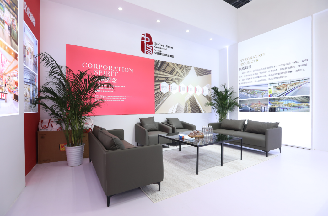 中图馆以开放式“会客厅”格局精心打造,呈现中图集团的发展历程、核心项目和多元业态。展区内通过多元业态陈列、集成项目展示及品牌联盟合作墙等多种形式,让参观者深入了解公司在机场商业运营领域的经营理念和重要项目。